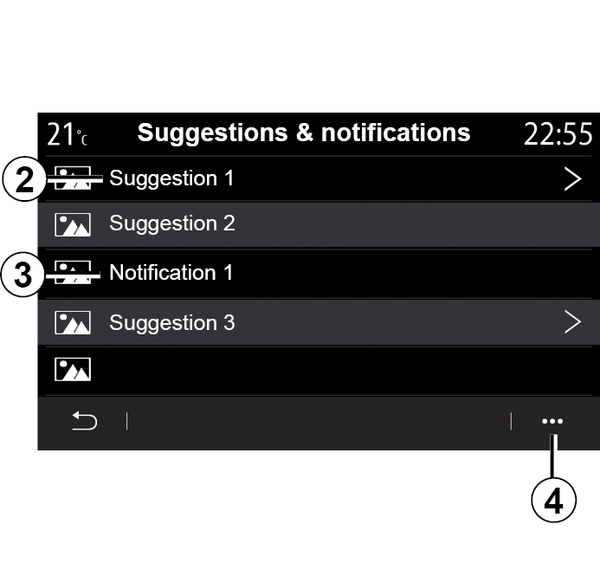 اضغط على القائمة "الاقتراحات والإشعارات" 1 للوصول إلى قائمة الإخطارات المستلمة.