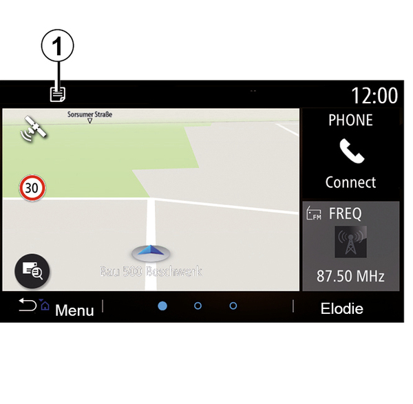 استخدم هذه القائمة لعرض الاقتراحات والإشعارات أثناء القيادة.