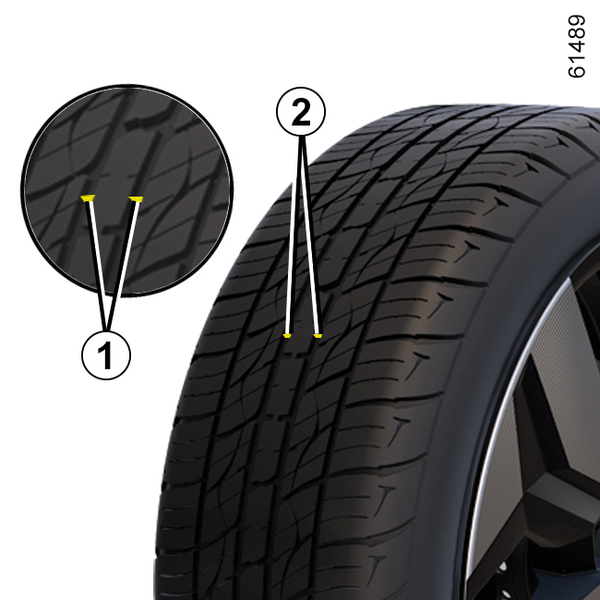 Когато протекторът на гумите се изтрие до нивото на индикаторите за износване, те стават видими 2: тогава е необходимо да смените гумите, тъй като дълбочината на гумения протектор е не повече от 1,6 mm и това води до слаба устойчивост на пътя при движение по мокра настилка.