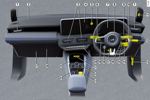 Местоположение на airbag за водача, клаксона.