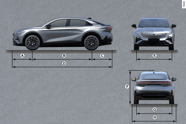 H | 1,885 2.047 with door mirrors folded out 1.860 with door mirrors folded in |