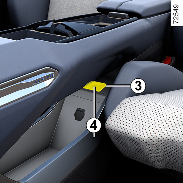Tryk på bremsepedalen, og læg derefter kortet 4 (knapsiden) på placeringsområdet 3 af konsollen.