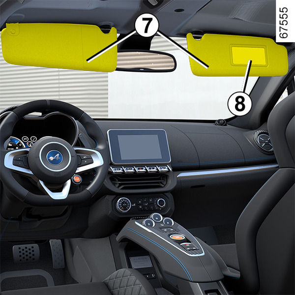 Die Sonnenblende auf der Beifahrerseite verfügt über einen Make-up-Spiegel.