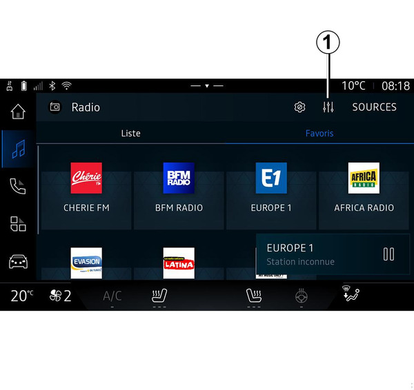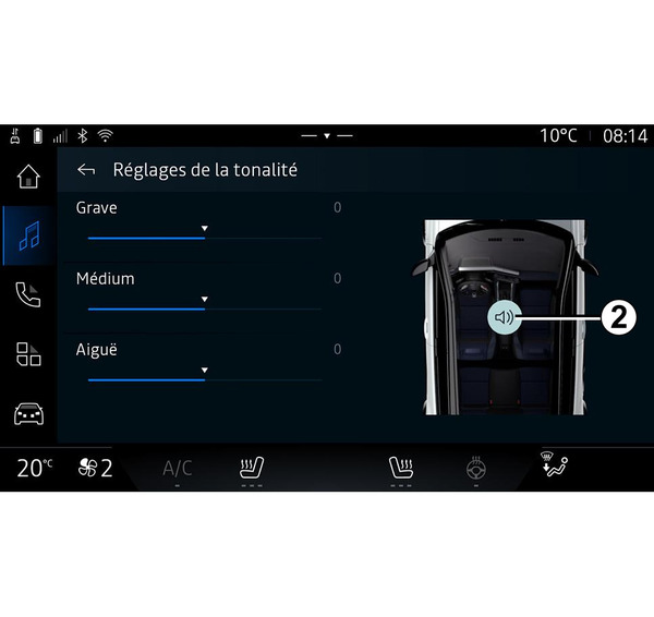 Αυτή η λειτουργία επιτρέπει τη ρύθμιση της κατανομής του ήχου. Πατήστε "Centred" ή "Μπροστά" για να βελτιστοποιήσετε την κατανομή του ήχου για όλους τους επιβάτες του αυτοκινήτου ή για την άνεση των πίσω επιβατών (σίγαση του ήχου στο πίσω μέρος και μετρίαση της έντασης στο μπροστινό μέρος του οχήματος).