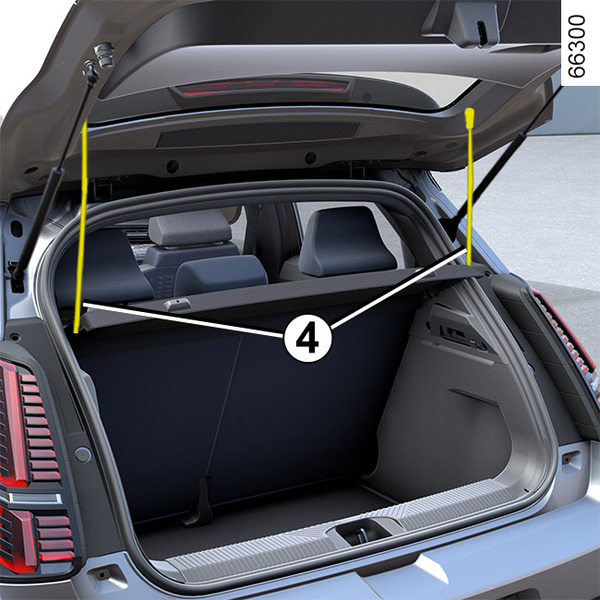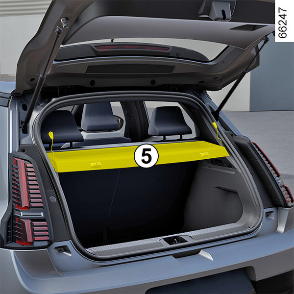 To access it, open the luggage compartment, then raise the luggage compartment carpet using the handle 3.