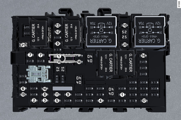The fuses can be accessed behind the glovebox A. Open the glovebox A using the opening button 1.