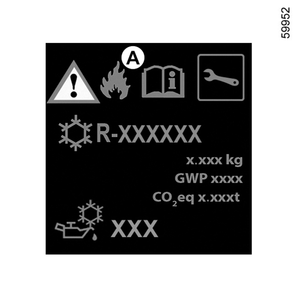 Olenevalt mudelist võite mootoriruumi sees asuvalt sildilt A leida järgmise teabe.