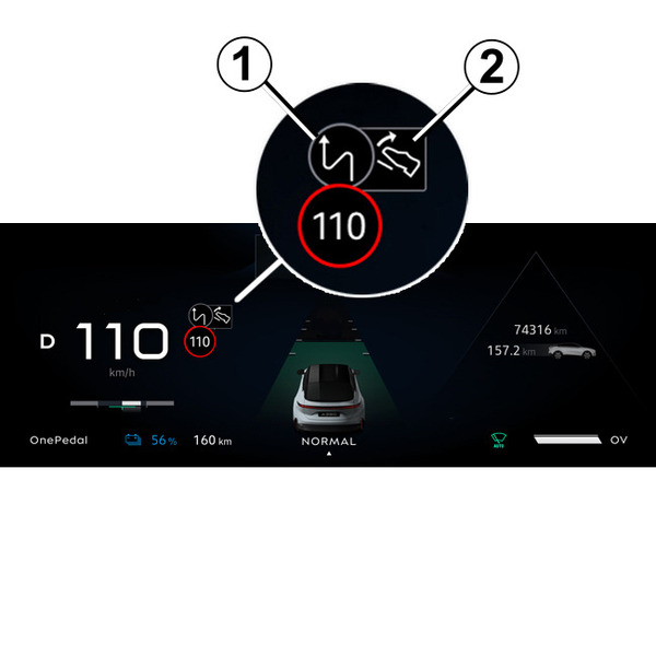 אם הנהג לא מכוונן את המהירות שלו, נורות האזהרה 1 ו-2 נשארות בלוח המכשירים עד שהמצב מתרחש.
