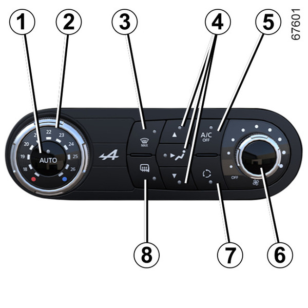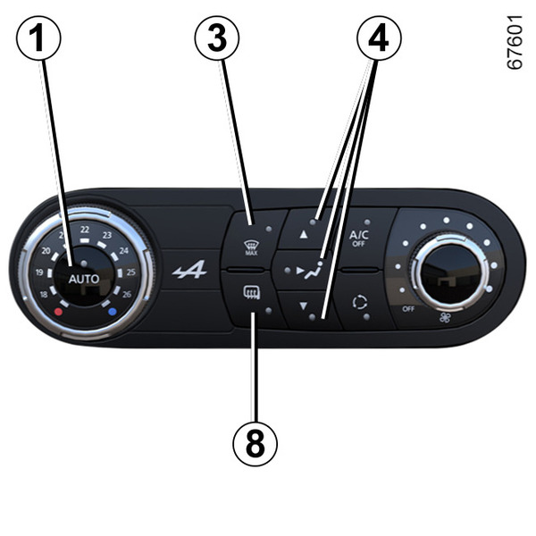 AUTO: omogućuje postizanje željene razine udobnosti, ovisno o vanjskim uvjetima. Pritisnite gumb 1.