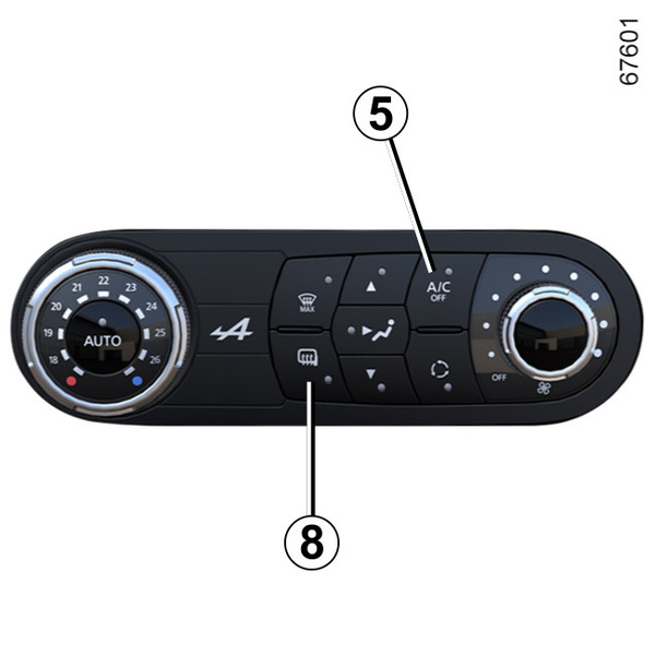 Napomena: kako bi se spriječilo zamagljivanje prozora, sustav može automatski isključiti funkciju. Isključuje se kontrolno svjetlo ugrađeno u tipku 7.
