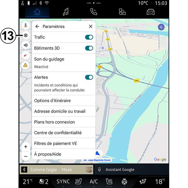 A multimédiás rendszer által javasolt egyéb útvonalakat is megtekintheti a 12 megnyomásával.