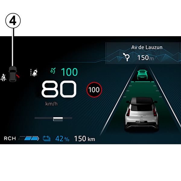 경고등 4가 표시되면 이는 오프닝 부품(도어, 트렁크 또는 충전구 커버)이 열려 있거나 제대로 닫혀있지 않음을 나타냅니다.