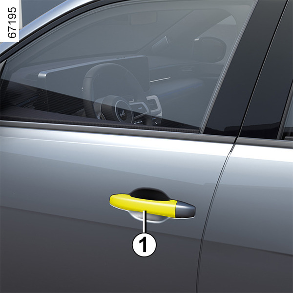 도어를 잠금 해제하거나 카드를 소지한 상태에서 핸들 1을 잡고 몸 쪽으로 당깁니다.