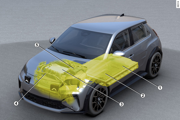 위험 상황이 발생할 수 있으므로, 차량의 "고전압" 전기 시스템(구성부품, 케이블, 커넥터, 트랙션 배터리)에 대한 어떤 작업이나 개조도 엄격하게 금지되어 있습니다. 지정 정비업소로 문의하십시오.