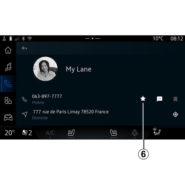 "즐겨찾기 추가" 5를 눌러 "즐겨찾기" 목록에 연락처를 추가한 다음 멀티미디어 화면에 표시된 지침을 따릅니다.