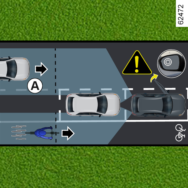 - 다른 차량(또는 오토바이, 자전거, 보행자 등)이 감지 영역 A 내에 있을 때