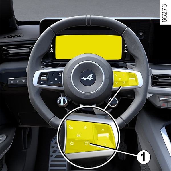 차량 사양에 따라서 계기판에서 다양한 뷰를 탐색하고 선택하려면 컨트롤 1을 사용합니다.