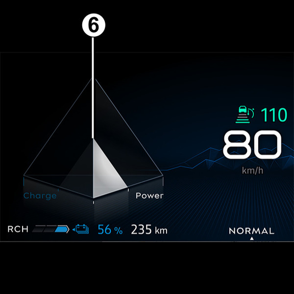 - 클래식 뷰: 속도, 액티브 주행 보조 장치, 정보 영역 그리고 차량에 따라, 파워 미터를 계기판에 표시합니다.