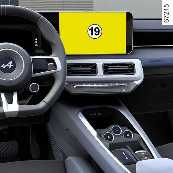 차량이 정지해 있고 엔진 시동이 켜진 상태에서, 멀티미디어 화면 19에서 "차량" 세계를 선택하고, "설정" 메뉴, 그 다음 "시스템"과(와) 그 다음 "단위"를 선택합니다.