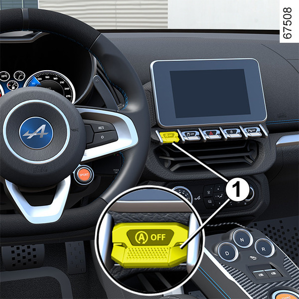 Norėdami išjungti funkciją, paspauskite jungiklį 1. Prietaisų skydelyje pasirodo pranešimas „Išjungimas ir užvedimas išjungtas“ ir nušvinta jungiklio 1 indikatoriaus lemputė.