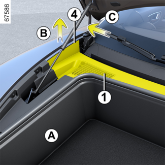 - hold the rear end of the wing 4 of the scuttle panel grille run channel 1 and pull it upwards to unclip it from the scuttle panel grille 2;