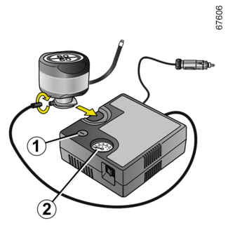 • adjust the pressure: to increase it, continue inflation with the kit. To reduce it, press the button 2.
