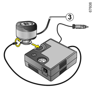 • see the information on the inflation kit compressor located in the vehicle luggage compartment and follow the instructions for use;