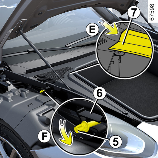 - atkarībā no automašīnas modeļa ievietojiet reni 1 spārna pārsega korpusā 7 (kustība E);