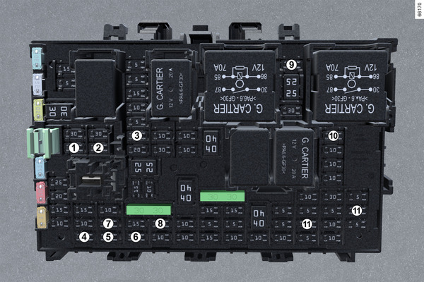 (drošinātāju skaits ir atkarīgs no automašīnas aprīkojuma)