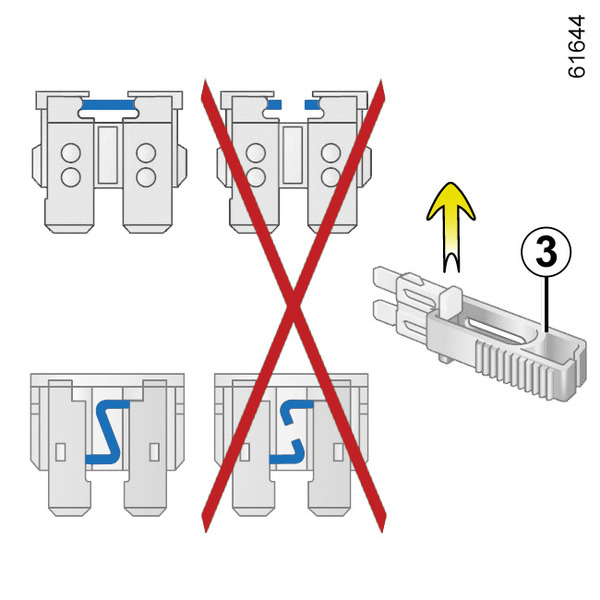 Izņemiet drošinātāju, izmantojot pinceti 3, kas atrodas uz drošinātāju paneļa.