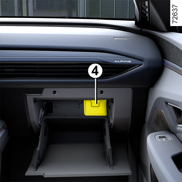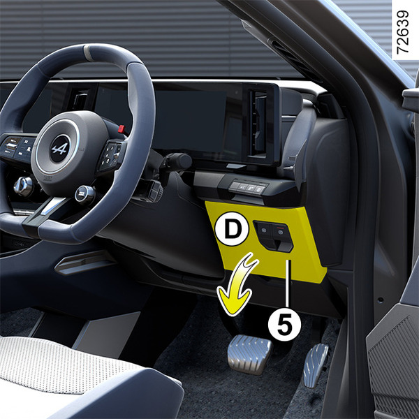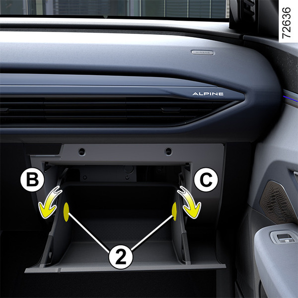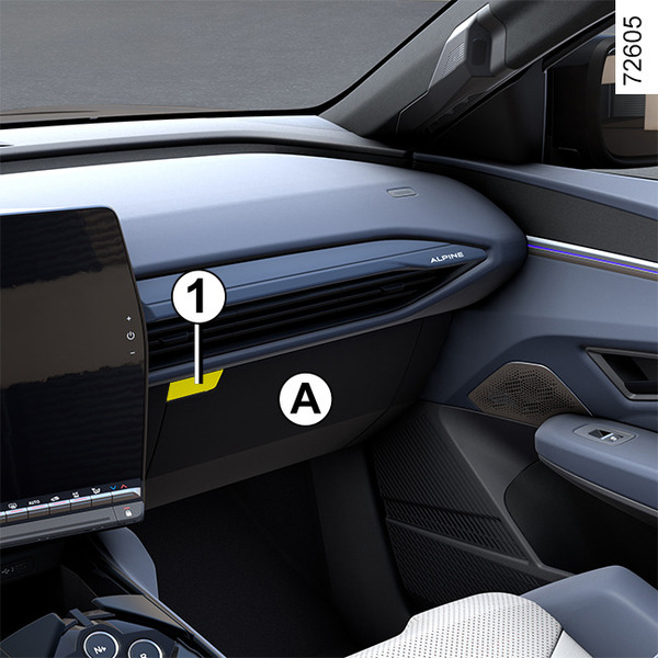 Bezpieczniki znajdują się za schowkiem A. Otwórz drzwiczki schowka A za pomocą przycisku otwierania 1.