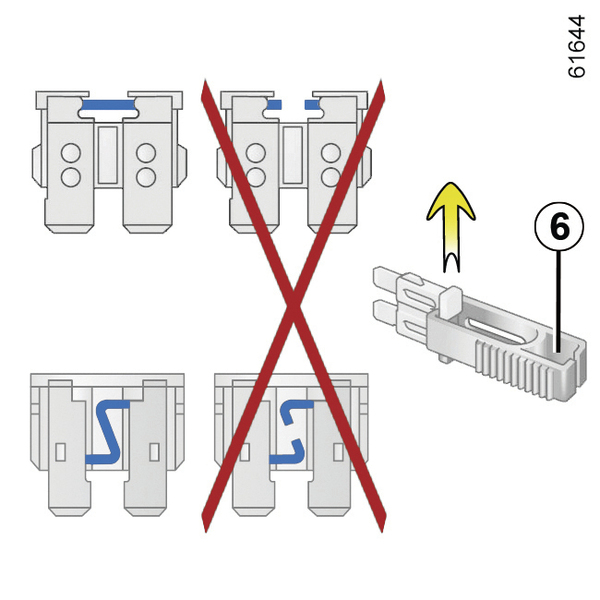 Wyjmij bezpiecznik za pomocą szczypiec 6 umieszczonych na płytce bezpieczników.