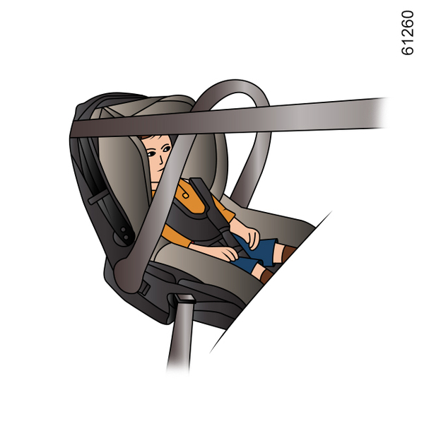 From 15 kg or 4 years, the child can travel using a booster seat, which will enable the seat belt to be adapted to suit his size and shape. The booster seat cushion must be fitted with guides to position the seat belt on the child’s thighs rather than the stomach. It is recommended that you use a seatback which can be adjusted in terms of height to position the seat belt in the centre of the shoulder. It must never rest on the neck or on the arm.