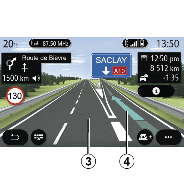 • lane(s) 4 with direction arrow(s): the lane should be taken according to the route calculated.