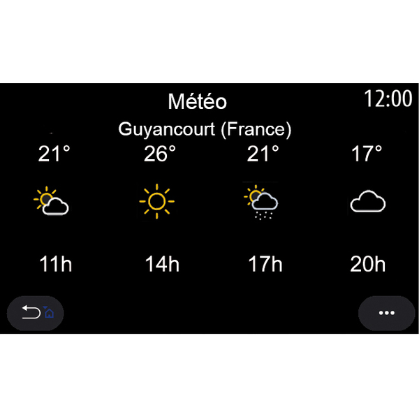 The multimedia system informs you of the weather forecast in the area around your position, or at the destination if a route is in progress.