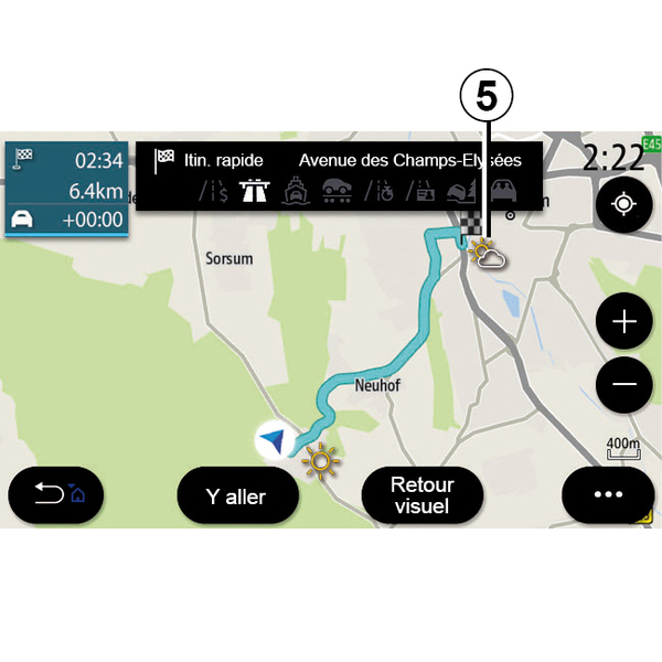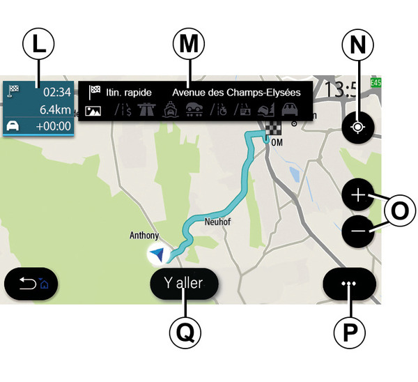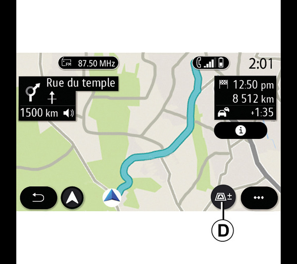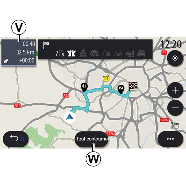 Note: if you do not follow the driving recommendations or if you quit the calculated route, a new route is automatically calculated by the multimedia system.