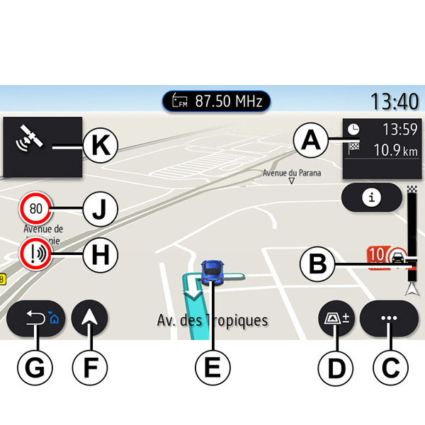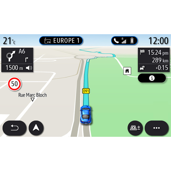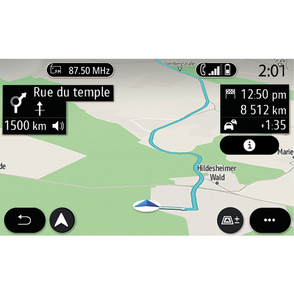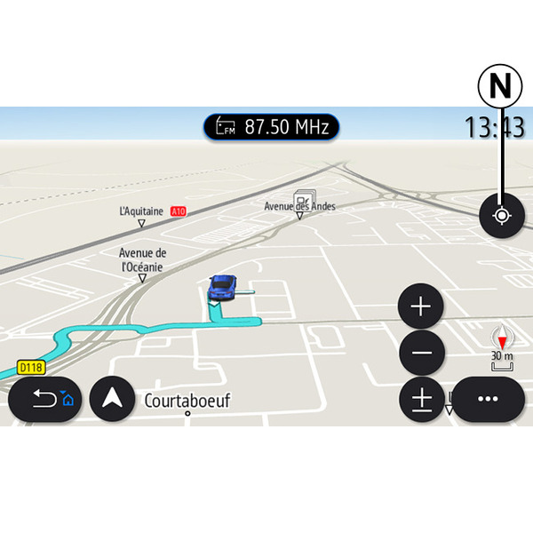 Guidance is activated once the route has been calculated. The multimedia system guides you all the way along your route, informing you at each intersection of the direction to follow over several stages.