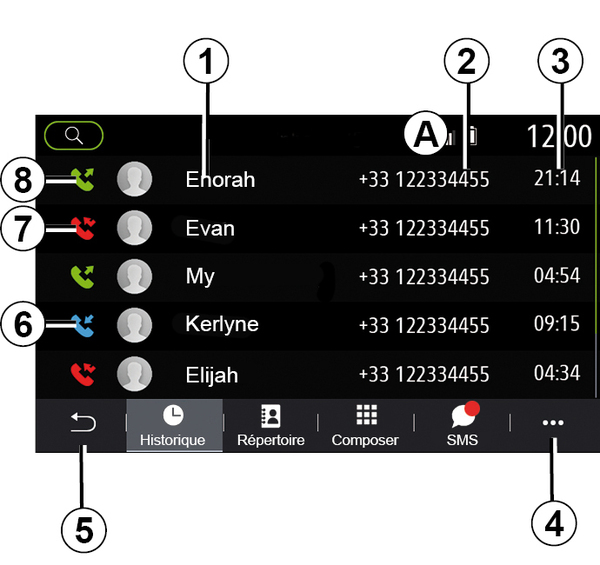 From the moment the first entry is made, the multimedia system suggests a list of your contacts with the same series of numbers.