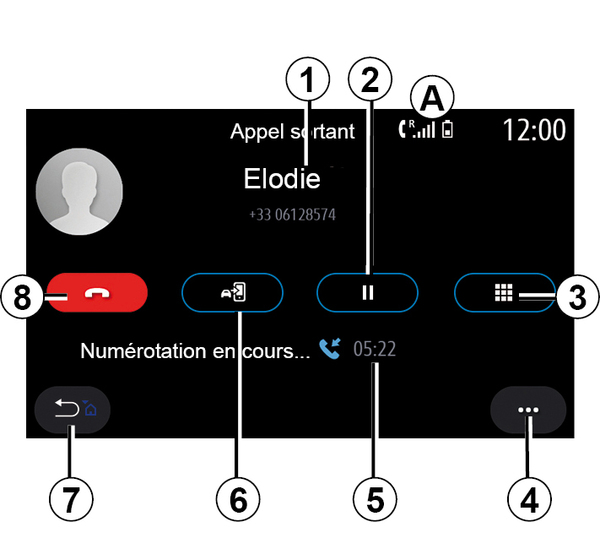 The multimedia system displays the number provided and begins to call it.