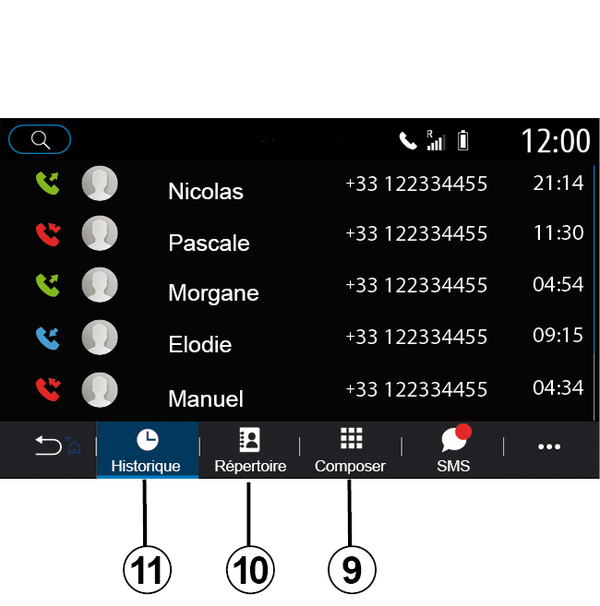 Note: to access the phonebook via the multimedia system, you will need to authorise data sharing on your phone Pairing, unpairing a telephone.