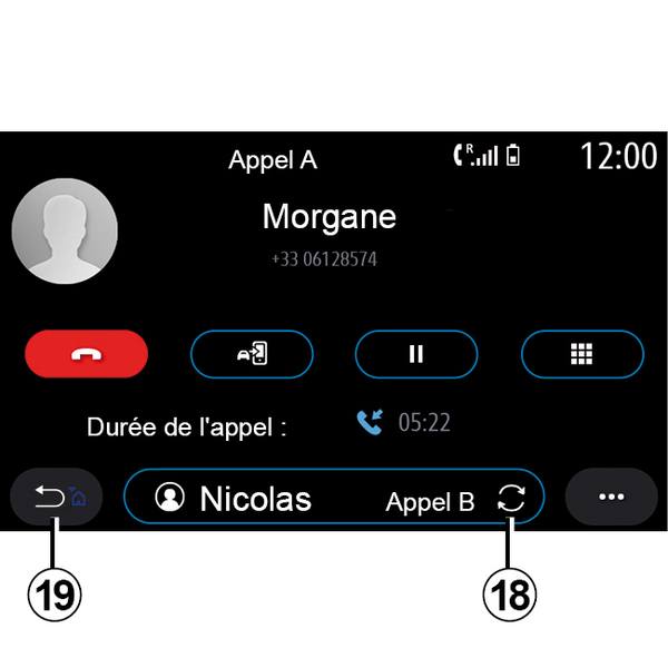 Press the "Transfer" button 13 to transfer the call from the vehicle to the phone.