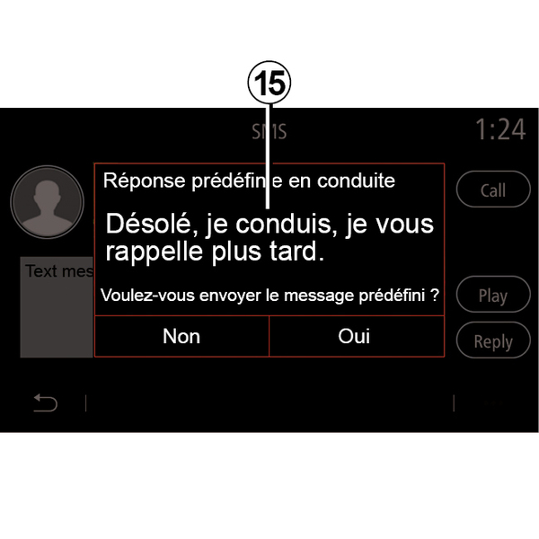 Note: during driving, the multimedia system suggests that you send a preset message 15.
