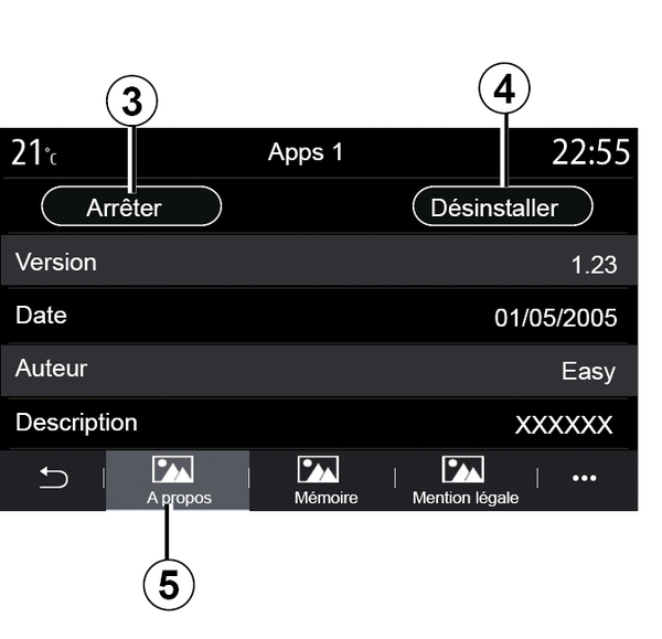 Select one of the apps 2. From the "About" tab 5, you can access information on the app (version, validity or creation date, title, etc.).