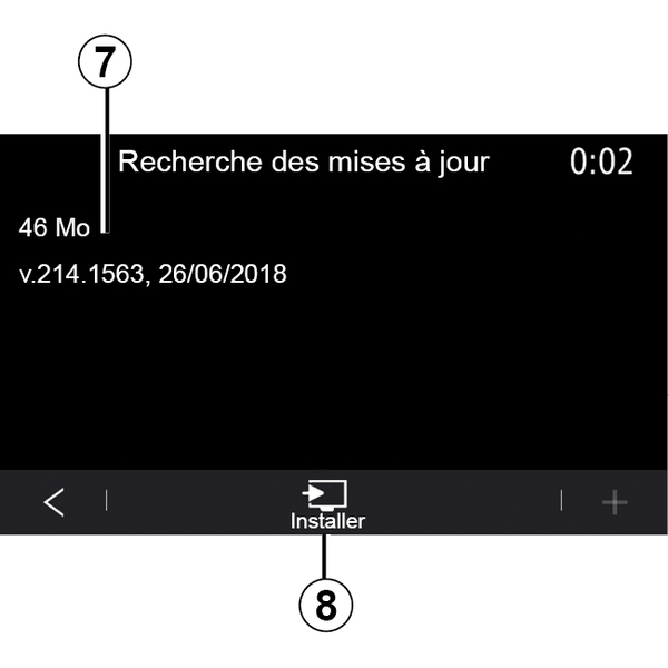 Follow the instructions shown on the multimedia system screen. You can leave your vehicle after pressing "OK" to confirm installation, without waiting for the update to finish.