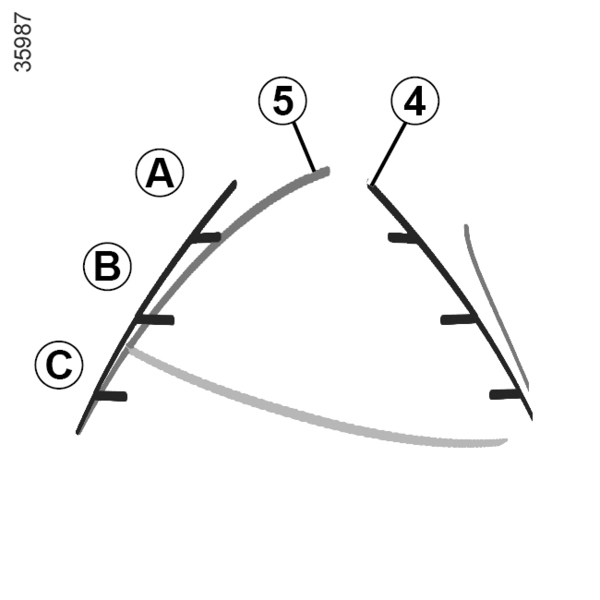 The fixed guide line includes coloured markers A, B and C that indicate the distance behind the vehicle: