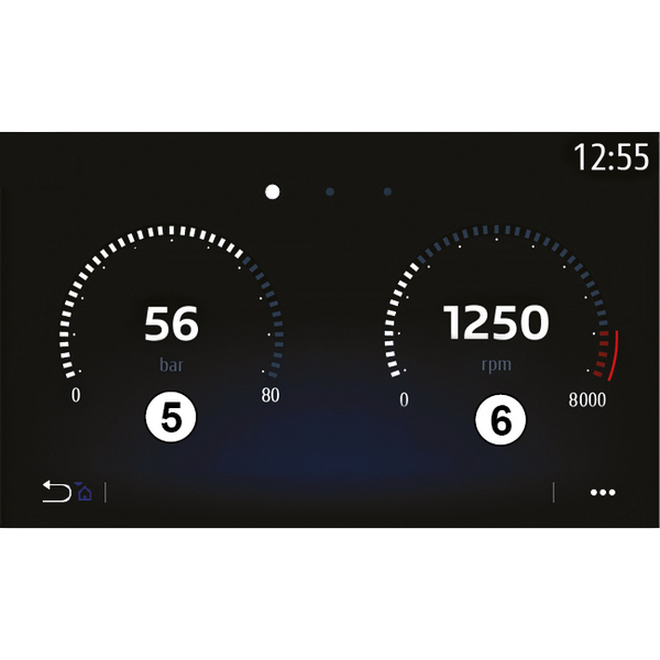 This function can be used to display one 5 or two 6 customisable pressure gauge widgets from the vehicle settings.