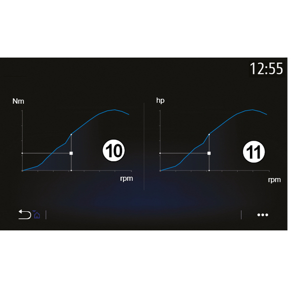Indicates the use of the turbocharger in real time and the available turbocharging reserve (in millibar).