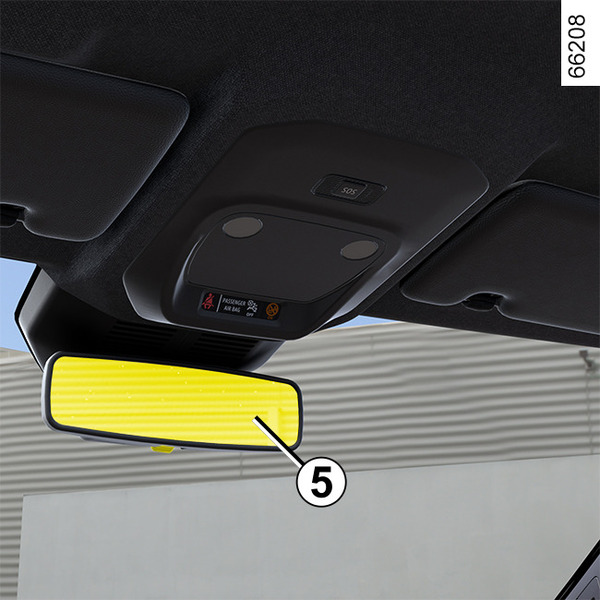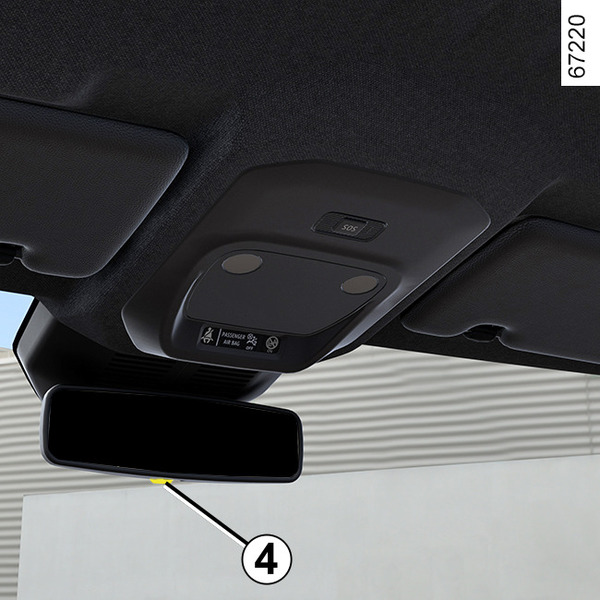 When driving at night, to avoid being dazzled by the headlights of the vehicle behind, shift the small lever 4 located behind the rear view mirror.