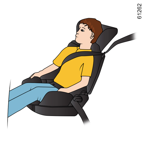 From 15 kg or 4 years, the child can travel using a booster seat, which will enable the seat belt to be adapted to suit his size and shape. The booster seat cushion must be fitted with guides to position the seat belt on the child’s thighs rather than the stomach. It is recommended that you use a seatback which can be adjusted in terms of height to position the seat belt in the centre of the shoulder. It must never rest on the neck or on the arm.