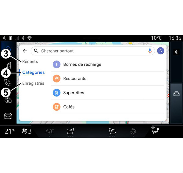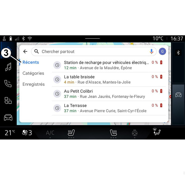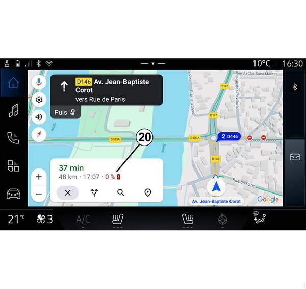 Atunci când introduceţi o destinaţie, sistemul multimedia vă informează dacă puteţi ajunge la aceasta, având în vedere nivelul de încărcare rămas al bateriei.